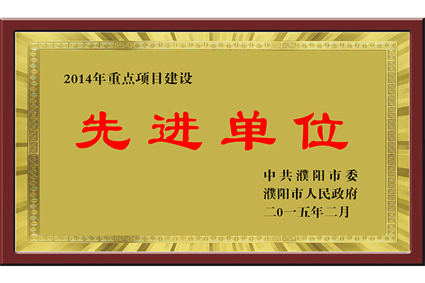> 2014年重点项目建设先进单位