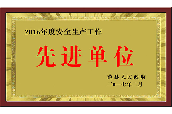 2016年度安全是生产工作先进单位