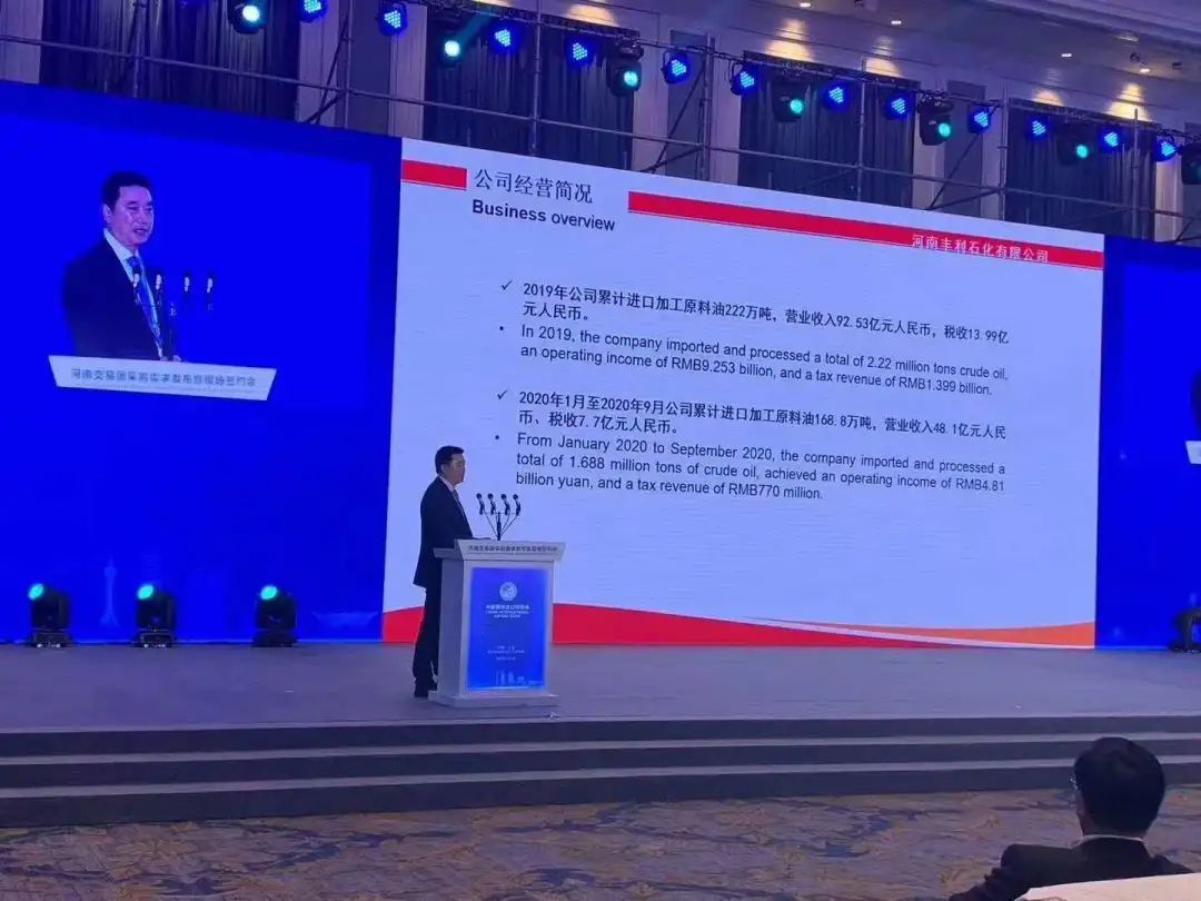 签约会上,公司与英国石油公司(以下简称“BP”)在现场签署了55亿元的进口原油采购合同,占全省场外签订合同额的14.7%,连续三年保持进博会跨国采购全省最大合同金额!公司董事长刘恩如作为采购方代表进行典型发言,就公司的基本情况、发展战略、生产加工能力、仓储物流优势等做了介绍。