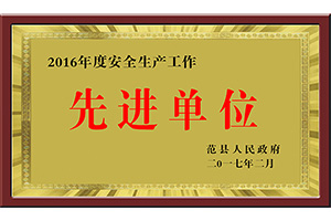 2016年度安全是生产工作先进单位