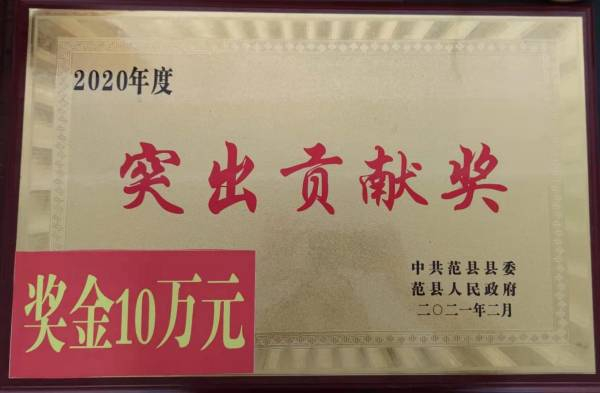 金年会 石化荣获范县2020年度“突出贡献奖”
